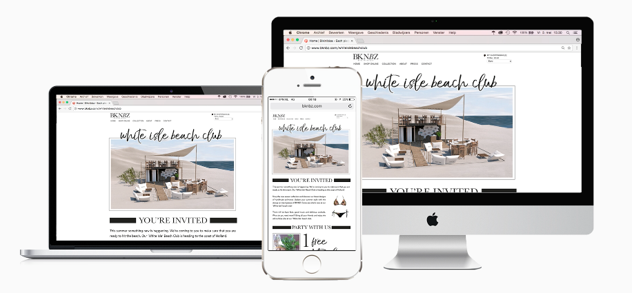En als kers op de taart hebben we nog enkele fantastische geschenken bedacht. Voor de kopers van bikini’s hebben we de ‘Hola Beaches’ tas als give-away, en voor een extra vleugje stijl, een bamboe kledinghanger met een inspirerende quote gegraveerd. Zo hebben we BKNBZ’s boodschap en sfeer tot in de kleinste details gecommuniceerd.